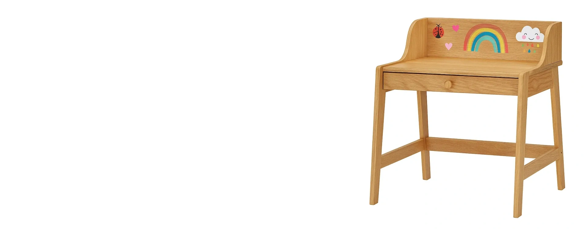 Bureau pour enfant en bois de chêne avec motifs arc-en-ciel et tiroir